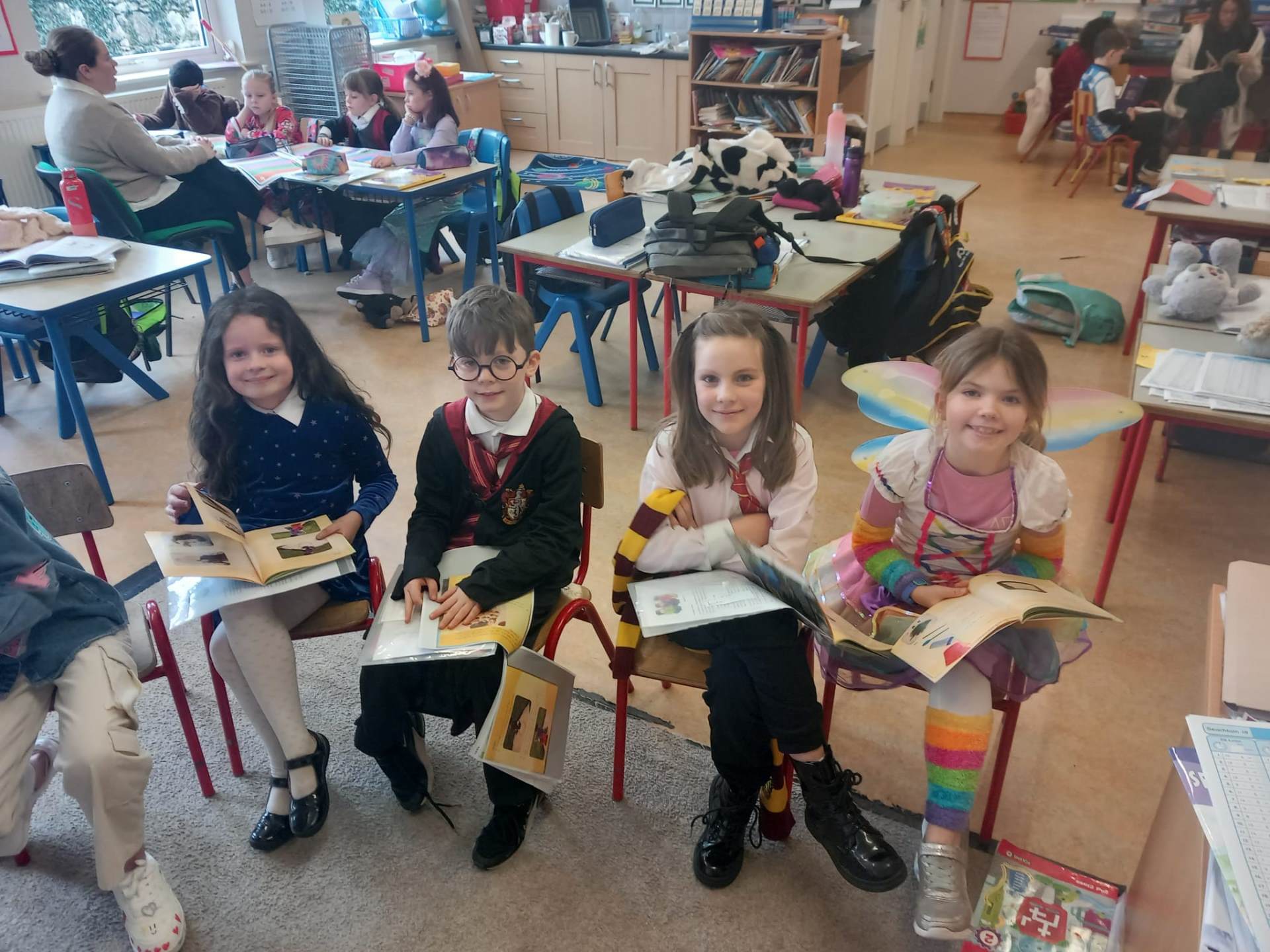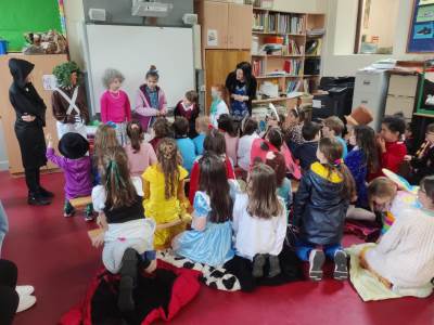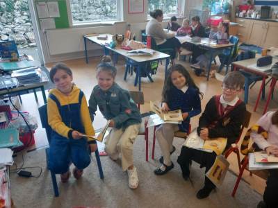 Tá an t-ádh linn leis an tacaíocht iontach atá againn ó thuismitheoirí. Míle buíochas le Mya Faherty, a tháinig isteach chun labhairt leis na ranganna ar fad faoi Malawi san Afraic. Bhí an-spéis ag na páistí agus chuir siad go leor ceisteanna. Bhain na páistí an oiread taitnimh as. Táimid fíor-bhuíoch as Kanako Machida, atá ag múineadh Seapáinis do ranganna 3 – 6 mar chuid den chlár Say Yes to Languages. Thar 8 seisiún tá na páistí ag foghlaim Seapánais chomh maith le fírící suimiúla faoin tír agus cultúr.